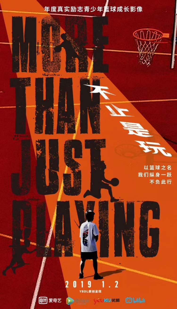 今天(1月2日)在腾讯、优酷、爱奇艺、b站等各大视频网站上线的年度真实励志青少年篮球成长影像《不止是玩》,可能会给你不错的启发。这部由NBA举行艾弗森惊喜出镜,YBDL (青少年篮球发展联盟)出品的作品,讲述了来自成都、上海、江门的三位篮球少年的逐梦之旅。
