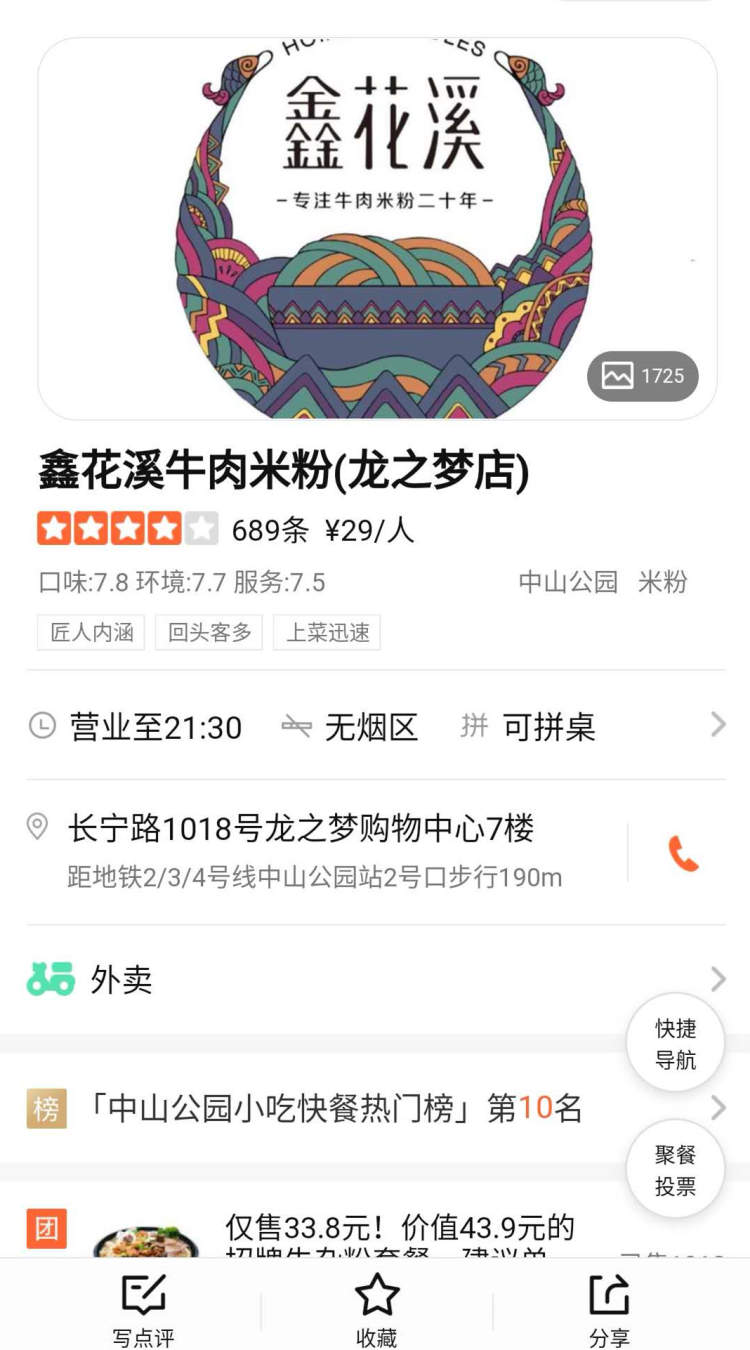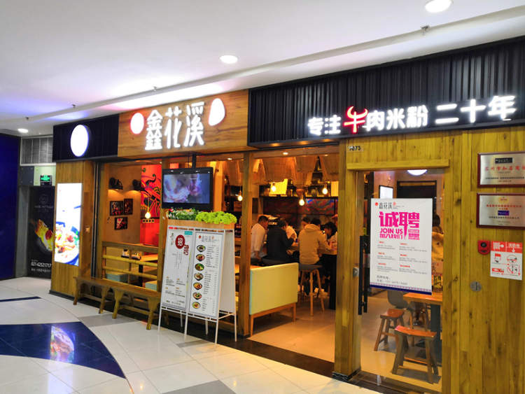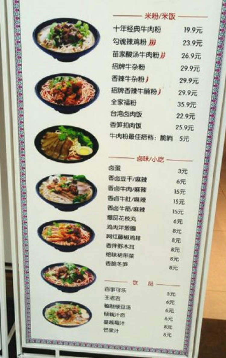 这家店位于龙之梦购物公园7楼,店面不大,店招上“专注牛肉粉二十年”十分醒目,在某网站上,位列中山公园小吃快餐热门榜第10名。