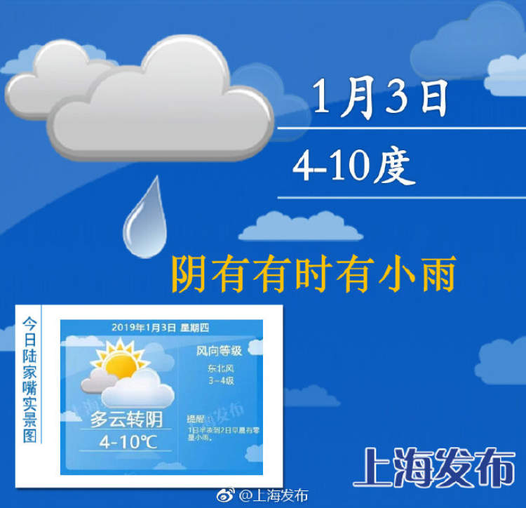 明显回暖至10度 雨水又要来侵袭 周到君 2019-1-03 来源:周到上海 今天天气有所回暖,不过又开始滴滴答答模式。今天阴有时有小雨,上午转阴到多云,今天夜里起阴有雨。今天最高温度10度,最低温度4度。晚归的朋友记得带好伞哦!周五起,申城又将迎来一波阴雨天气,最高温维持在8-10度之间,最低温则先升后降,下周一仅有3度左右。 来源:周到上海 作者:周到君 赞一个 (0)