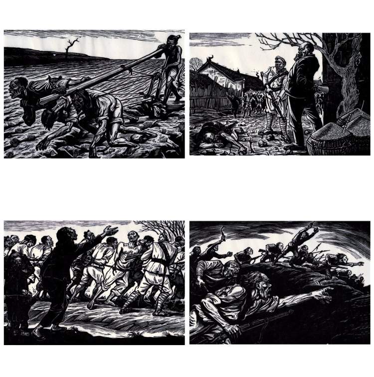 ▲李桦,《怒潮》,木刻版画,20×27.5厘米,1947年,龙美术馆藏