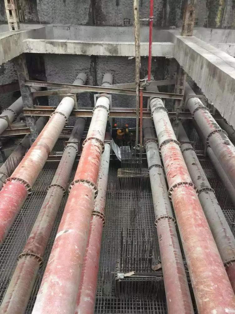 图为抚顺路站主体基坑首块底板浇筑完成