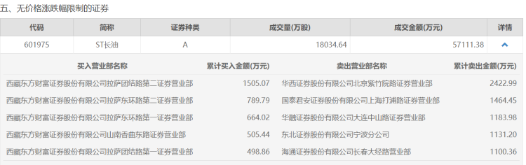从龙虎榜看,周二ST长油前五大买入方均在东方财富证券营业部,而国泰君安打浦路营业部、东北证券宁波分公司等大笔卖出。