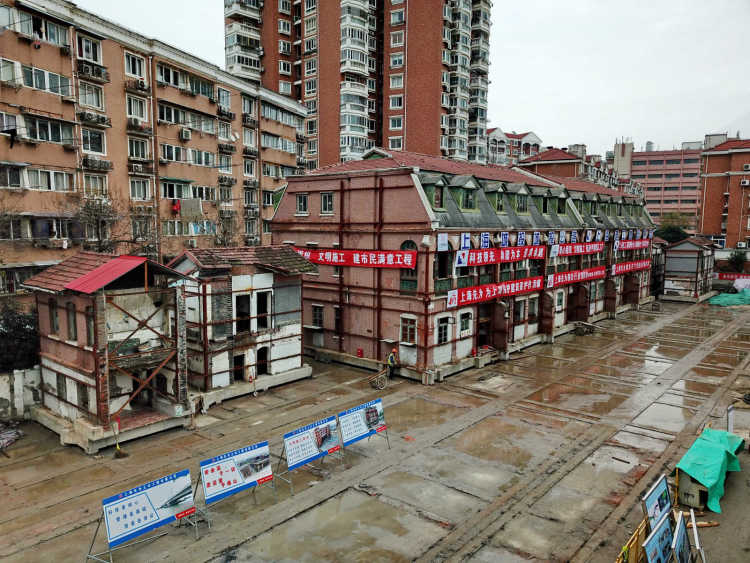 周到君了解到,此次平移把文保建筑整体向东北方双喜小区靠近,为后期杨树浦路管线改排及道路翻交腾出了场地,也为江浦路越江隧道下一阶段的施工奠定了基础。待这些工程全部结束后,2021年,老洋房将再次经历平移,逆向移回原位,组合拼装成原有结构。
