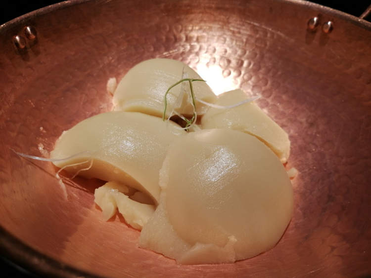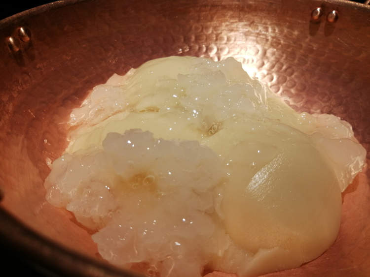 这一锅像布丁一样巍巍颤颤能抖动,居然就是美人锅的主角。店员说,只要微微加热两三分钟就可以喝了,第一碗,一定要放下手机,细细品味。