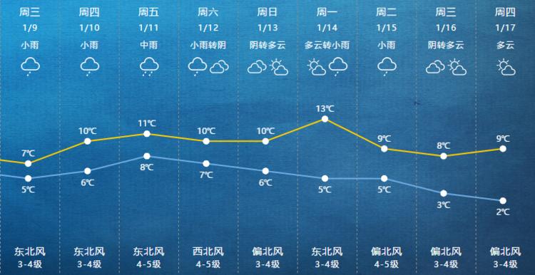 全天温差不大,最高气温在8℃左右,全天体感较为潮湿阴冷。