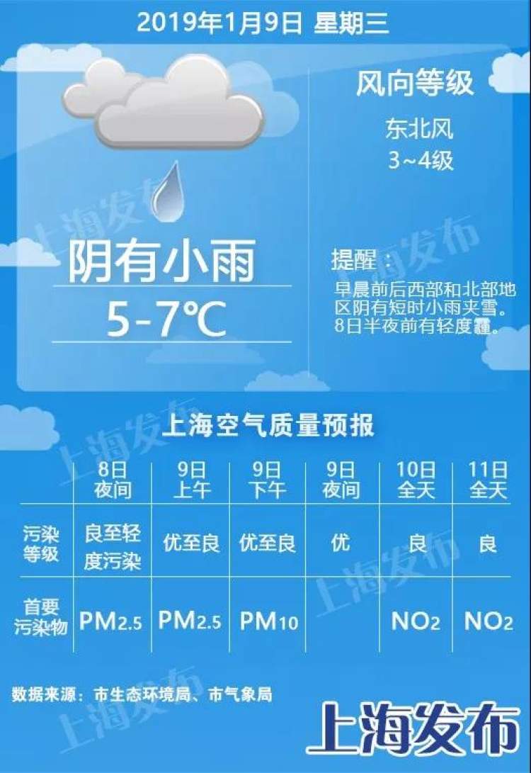 申城今天阴有小雨,早晨前后西部、北部地区阴有短时小雨夹雪。北到东北风3-4级,最低气温5度,最高气温7度,温度略降,全天温差不大,但体感较为阴冷,大家还是要注意保暖。在较活跃的暖湿气流和扩散南下冷空气的共同影响下,上海短期内还是维持阴雨天气格局。预计周五的降水将明显一些。气温变化不大,本周中后期最低气温5-7度,最高气温在7-11度。