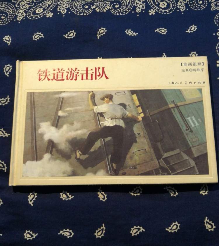 上世纪90年代后期,韩和平先生从美国讲学8年后回来,又在枫泾镇找到了艺术灵感,他又开始了激情创作。时年已70多岁的他开始画自己最喜欢的油画,除了当地水乡风土人情之外,他还用油画形式再画了《铁道游击队》的10幅连环画封面。采访后不久,《铁道游击队》油画组画,也由上海人民美术出版社出版了。
