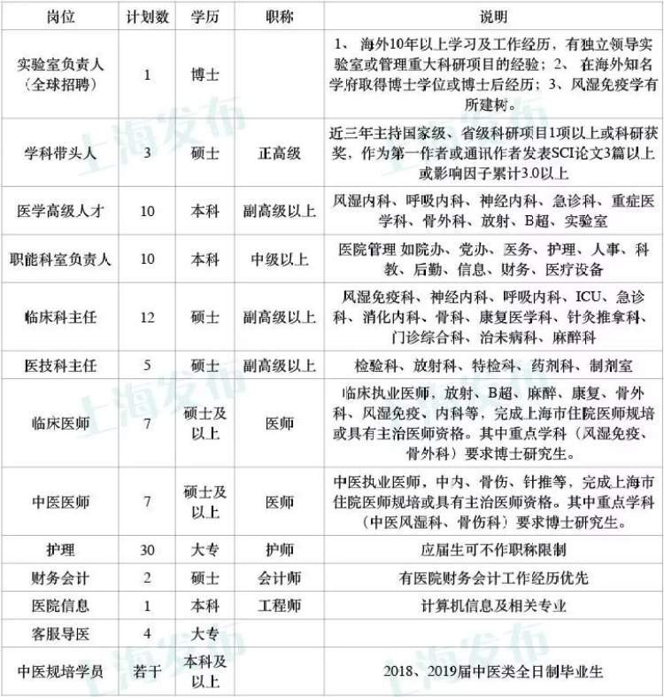 1、研究生学历,风湿免疫、骨外科、放射、超声、康复、麻醉、中内、骨伤、针推等专业;
