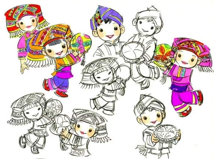 2018年的《拜年》邮票图稿由最初的表现回族同胞改为壮族同胞,从重新设计到最后交稿也就两周时间。吴冠英教授不无遗憾地表示,每个少数民族都有自己的一套艺术形式,像壮族的壮锦,不论是织的还是绣的,都非常有特色,