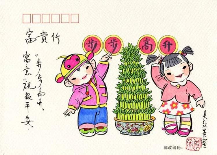 《拜年》系列邮票由清华大学美术学院教授吴冠英创作设计。