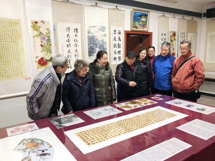 其中,有两位成员因年事已高住进了养老院,但听到书画展的消息后,就让子女把作品带来展出。作为书画社的成员,集体的事就是自己的事。