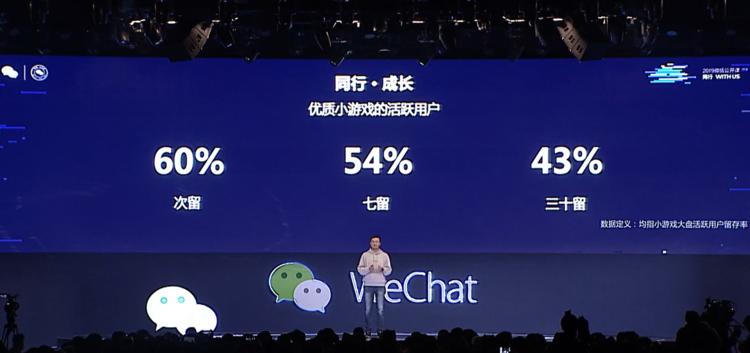 小游戏上线一年,月度活跃用户有4亿,开发者超10万。优质小游戏活跃用户次日留存率高达60%,七日留存率达54%,三十日留存率为43%。