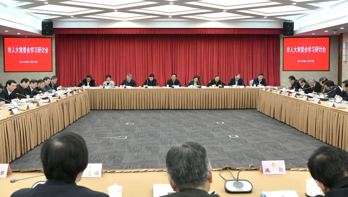 市人大常委会主任殷一璀主持会议并讲话。市委常委、市委秘书长诸葛宇杰,市人大常委会副主任徐泽洲、沙海林、蔡威、高小玫、肖贵玉、莫负春出席会议。