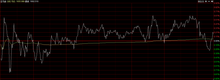 隔夜美股市场整体小幅上涨,纳斯达克综合指数涨幅0.87%(见下图),亚马逊表现明显落后于纳指,该股涨幅0.17%,收报1659美元,最新总市值8114亿美元。