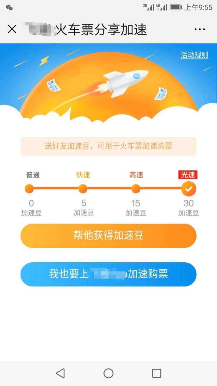 很多不抢票的网友也已经发现了这样一件事:临近春运,朋友圈里越来越多的好友开始转发类似“我正在抢火车票,快来帮我加速”的链接,点进去以后就可以帮好友获取抢票加速包。事实上,这也是抢票软件进行自我推广的一个重要手段。