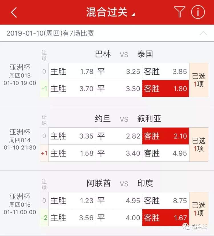 以上是今天亚洲杯三场比赛的推荐,谢谢关注微信公众号“指盘王”,希望能与广大球迷彩民一同红单