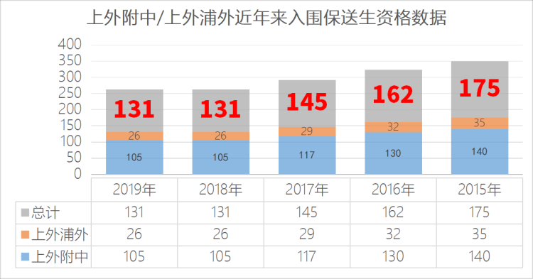 而对比2015年以来上外附中和上外浦外保送生推荐资格入围数量,则可以发现,呈逐年下降趋势。2016年两校保送生入围名单总数比2015年减少了13人;2017年则比2016年减少了17人;2018年比2017年减少了14人。