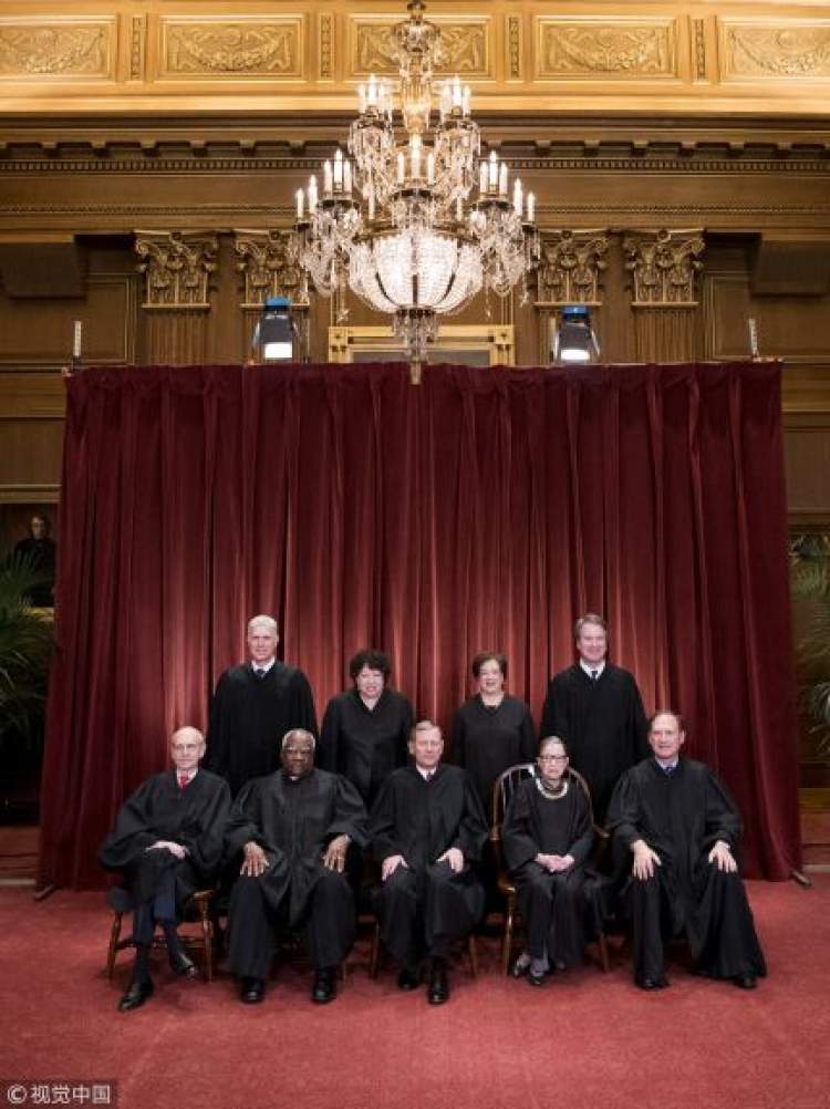 现在最高法院的9名大法官中,5名属于保守派,4名属于自由派,保守派已略占优势。