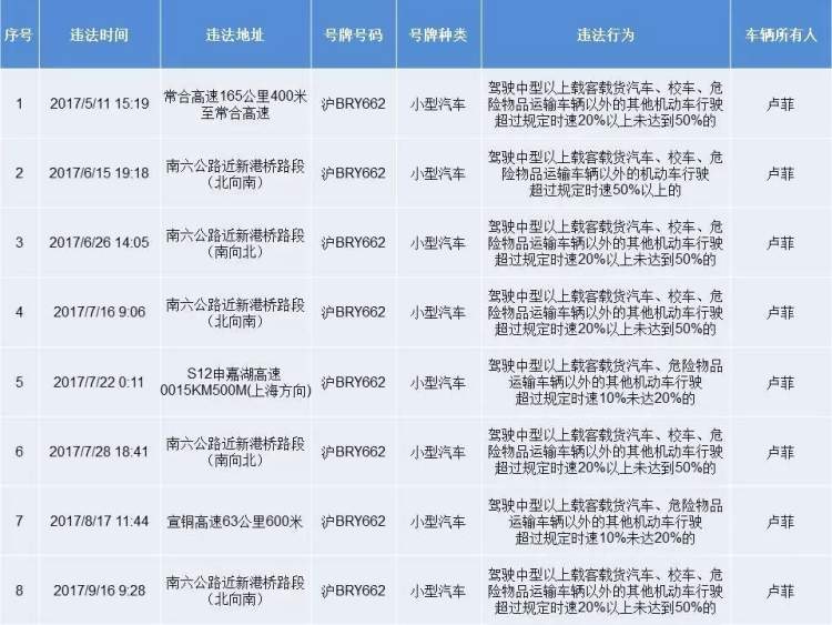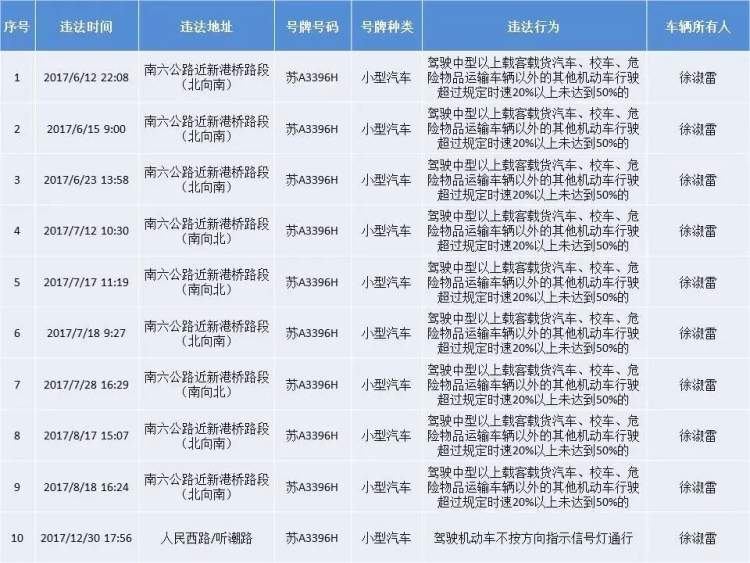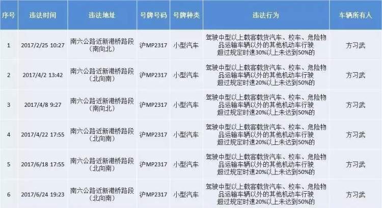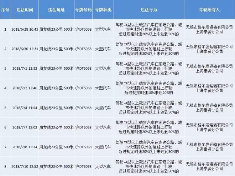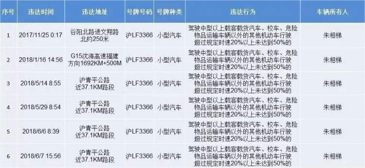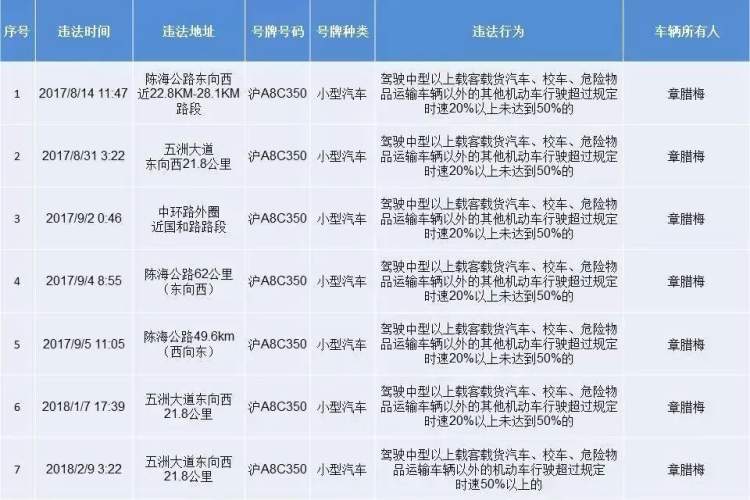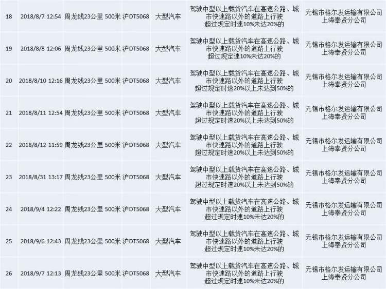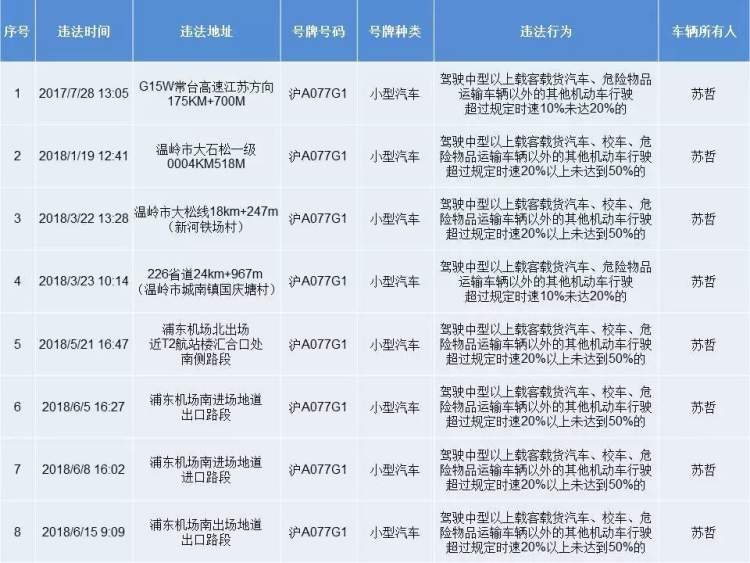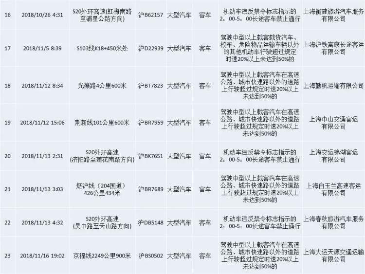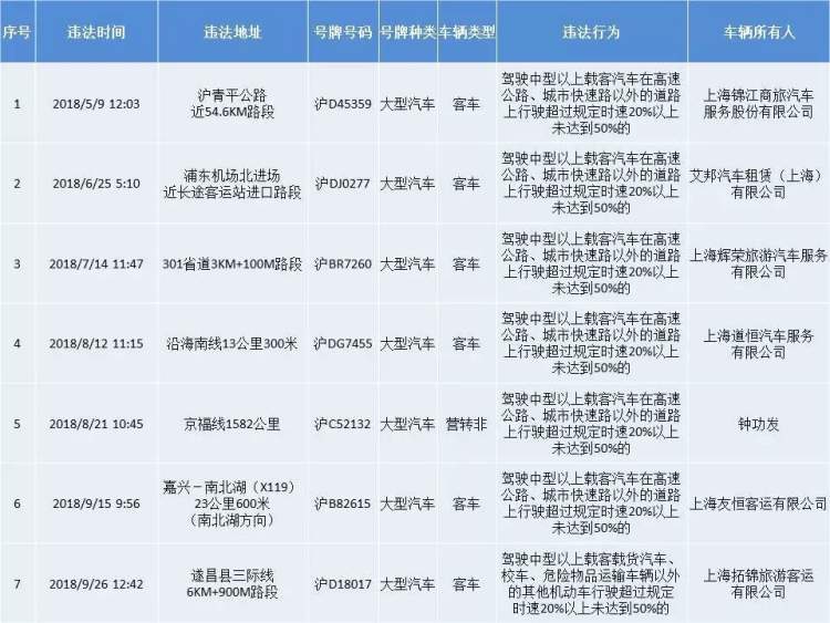 “三超一闯(超速、超员、超载和闯红灯)”违法突出车辆名单