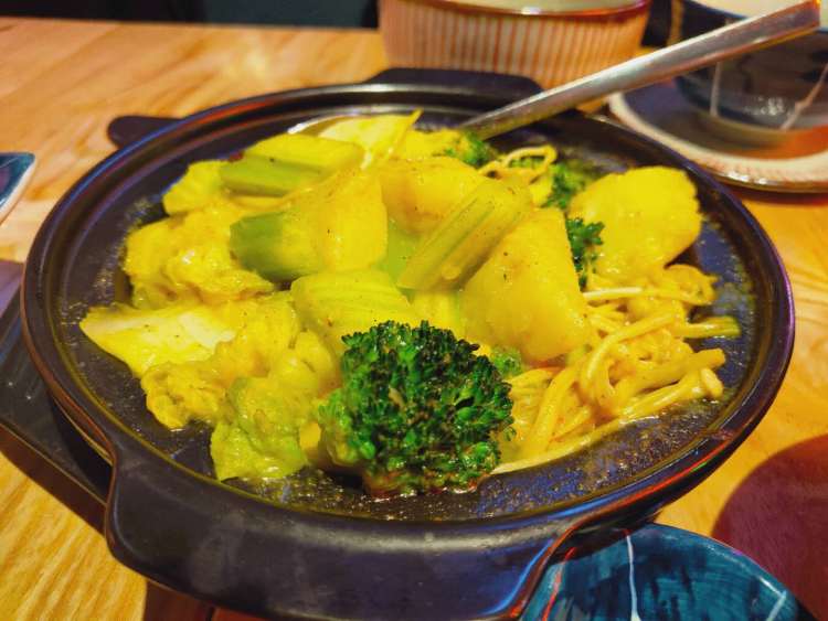 咖喱杂菜煲的咖喱则添加了奶味来配合蔬菜,增添了奶油炖菜的效果,使味觉层次更加分明。