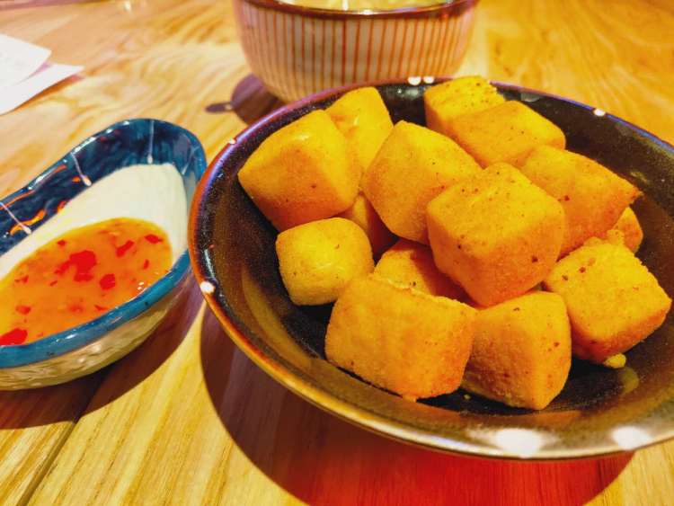 虽说是以“碗仔翅”打天下的店,不过这家的其他菜也都还不错。盐酥百味豆腐长相讨喜,外层酥脆,里层软嫩,配合甜辣酱食用口味更佳。