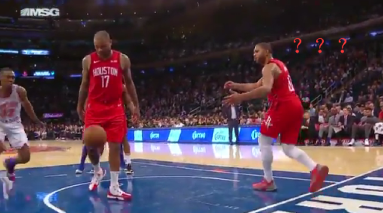 比赛还剩59秒,塔克在外线防守对方的特里尔时被对方骗起犯规,送给了对手三次罚球机会。特里尔三罚全部命中后,尼克斯采用了全场紧逼战术,原本应该在后场接球的哈登被死死盯住。此时,处在位置准备发球的戈登把球传给了离自己最近的塔克,可没想到,塔克竟然侧身让过了戈登的传球,尼克斯中锋冯莱眼疾手快,从塔克身后突然杀出,抢过皮球上篮命中。