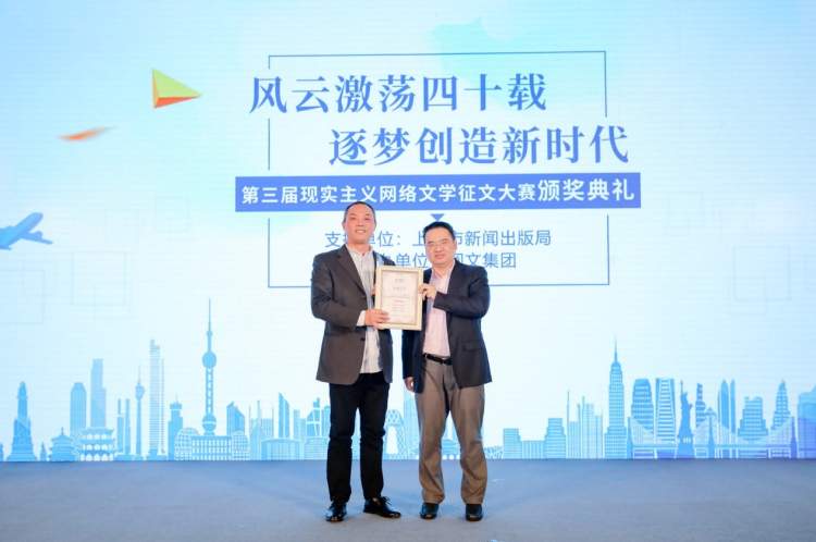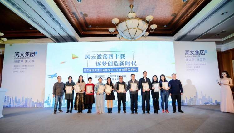 1月24日,由上海市新闻出版局指导,阅文集团主办的第三届现实主义网络文学征文大赛颁奖典礼暨第四届大赛启动仪式在沪举办。展现社会底层小人物在上海奋斗历程的《上海繁华》获得特等奖,描绘从沿海滩涂到高原深岭高铁建设的《中国铁路人》获得一等奖。