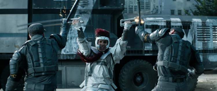 比如死侍对战红坦克这一段仍然保留了“小贱贱”被徒手撕成两半的片段,只是这一段的时长明显被剪短了,只留下了几个上下半身已经“分家”的镜头。