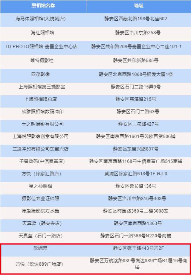 周到君发现,在此次新增门店的名单里,有两家店是在曹家渡辖区范围内。这对于住在曹家渡的居民来说,无疑是一个好消息。以往,社区居民都要到身份证信息采集指定地点拍照,以曹家渡为例,是到余姚路529号(静安分局交警二大队所在地)。现在好了,曹家渡居民还有另外两处门店选择。