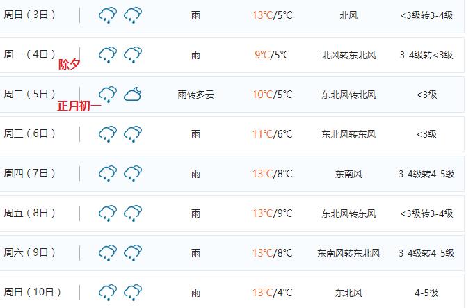 ■2月4日-2月10日的春节假期,上海几乎每天都有雨。/数据来源 中央气象台