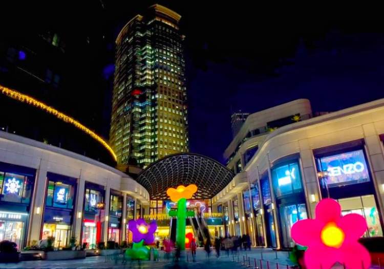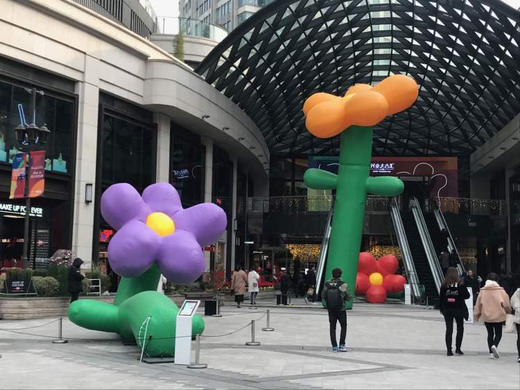 一走出地铁13号线南京西路站8号口,广场上的四朵巨型充气花朵就吸引了周到君的目光。