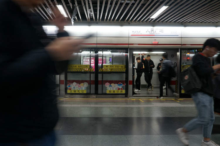 拥挤的地铁站台上,一位乘客被前拥后挤的人群一路裹挟着前行,一脚踩进了站台缝隙摔倒在地。站台传来滴滴滴的关门提示声,人群一阵骚乱,摔倒的乘客慌乱地爬起,车门在身后重重地关上……
