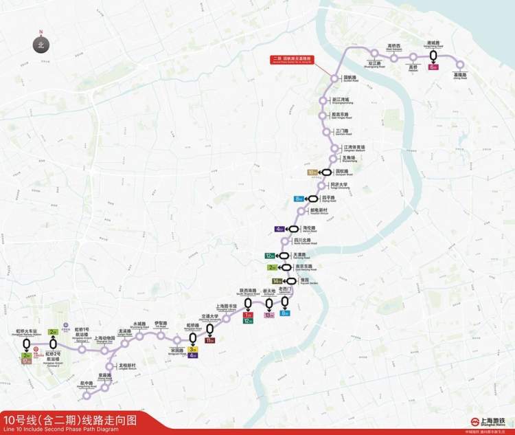 10号线二期线路长度10公里,全线设国帆路站、双江路站、高桥西站、高桥站、港城路站(与6号线换乘)、基隆路站6座车站,与已建6号线换乘。