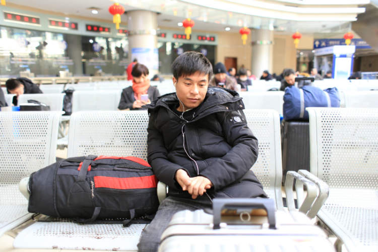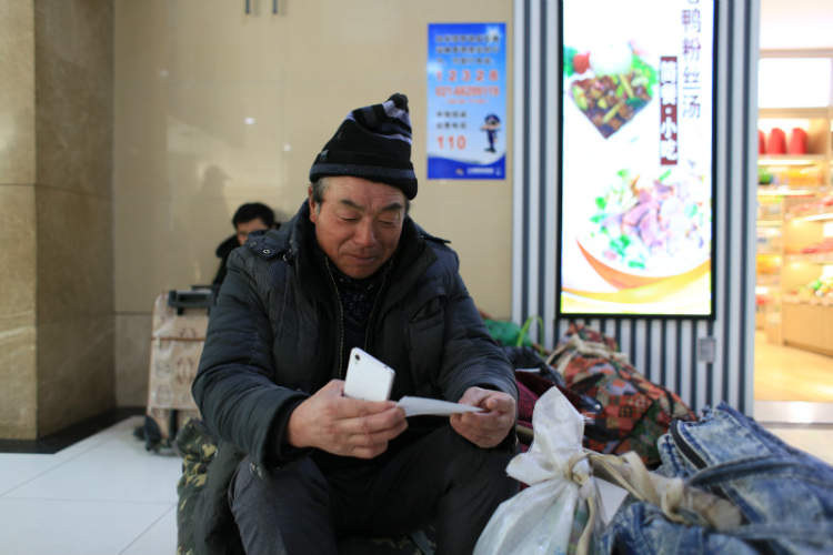 来自江苏盱眙的老魏,今天上午刚刚完成了工地上的任务,虽然自己乘坐的大巴要下午才发车,但他和几个老乡早早地就赶到了车站,可以说是归心似箭。