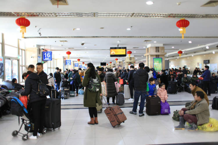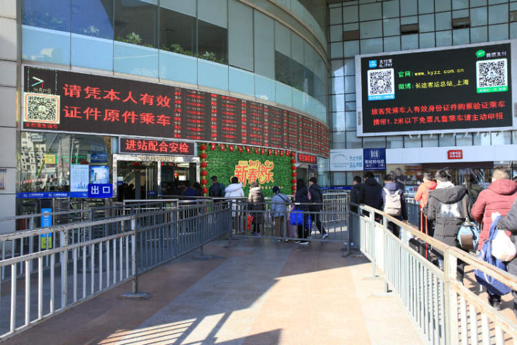 1月27日,上海长途汽车客运总站迎来客流高峰。当天上午,记者在总站二楼的候车大厅看到,在这里候车的旅客摩肩接踵,整个大厅显得格外热闹。