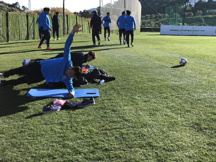 申花与直布罗陀mons calpe FC队的这场热身赛,沈俊首发登场,陈钊替补,老将李帅休战,不过李帅并没有放松训练,他在场边的瑜伽垫上,一边进行着各种牵拉,一边看比赛,一刻都没有停歇。