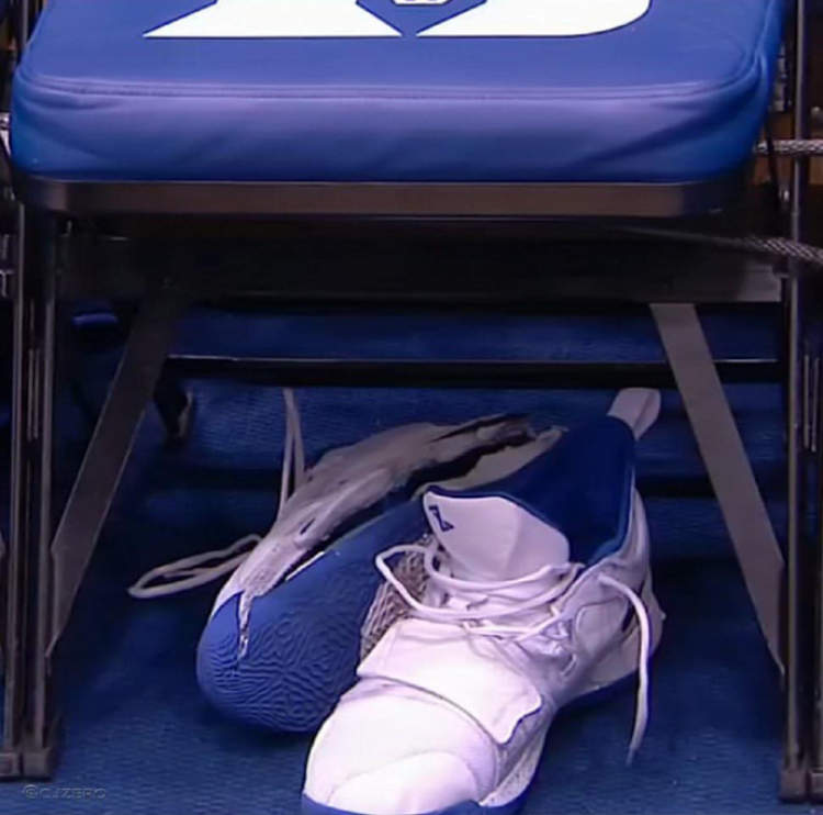 然而,当比赛刚开始不久,场上就出现了让人意想不到的一幕。锡安因为脚底踩滑受伤离场,更夸张的是,他的鞋子被完全踩破了。随后杜克大学赶紧叫了暂停,锡安也一瘸一拐地走到了替补席,稍作调整之后,他直接走进了球员更衣室,本场比赛确定不会回归。