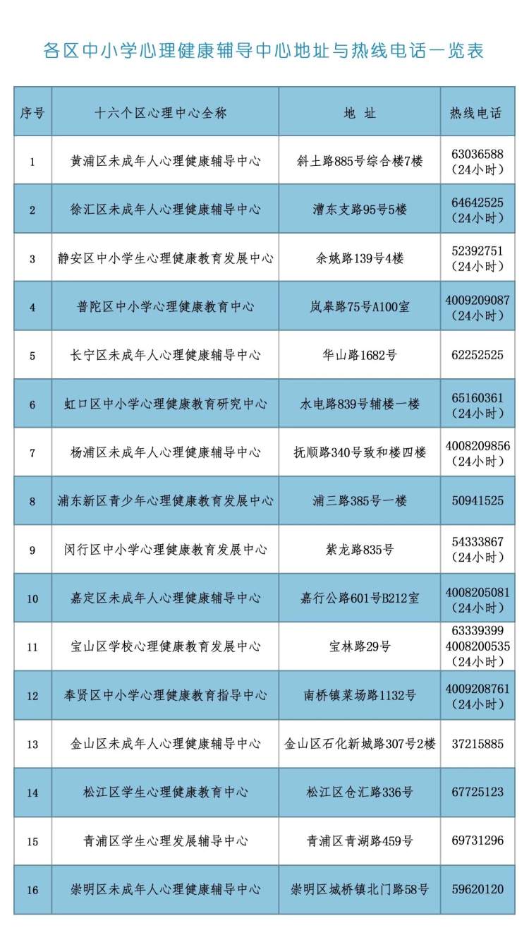 周到君经调查,查询到各区学生的24小时心理咨询热线, 请家长赶紧惠存: