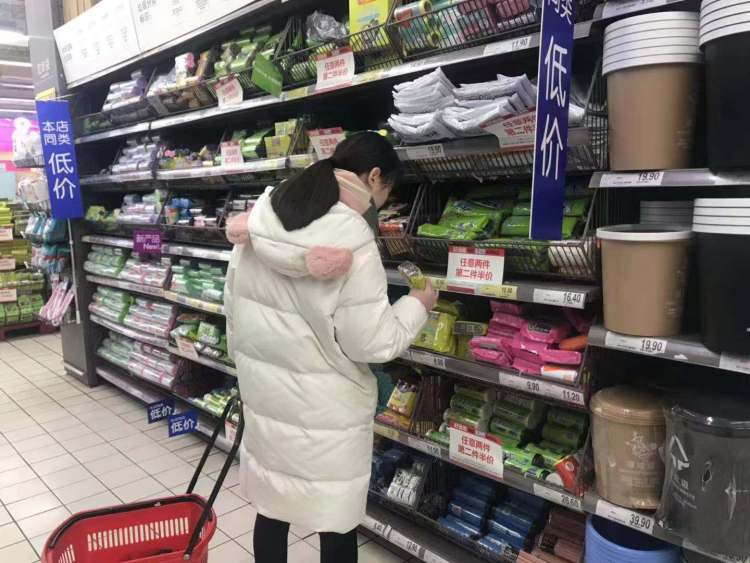 接下来购买垃圾袋的一对年轻的夫妻,他们在货架前选择比较了一会,然后选择了尺寸为45*50厚实平底垃圾袋。在周到君向他们询问是否知道分类垃圾袋时,他们都表示不知道。“我们知道之后要强制垃圾分类了,小区里已经有了不同颜色的垃圾桶,但是还没有收到宣传单、通知这样的东西强制我们分类。”在刘小姐听了周到君对于分类垃圾袋的简单介绍后,她更换了自己要买的垃圾袋,换成了干湿垃圾袋组合装的垃圾袋,并且评价说“这个垃圾袋看起来好像比原来想买的那个厚实一点。”