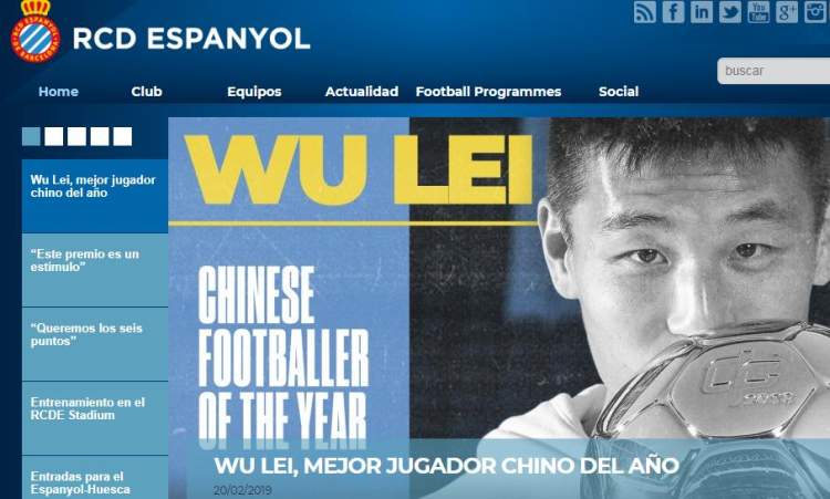 西班牙人官网在文章中写道:“武磊荣获由体坛传媒集团主办的2018年度中国金球奖。武磊在上个赛季中超联赛共打入27个进球,完成8个助攻,超越外援成为中超射手王。此外,上海上港足球俱乐部也在历史上首次获得中超冠军,打破了恒大长达7年的垄断。在国家队,武磊全年出场9次打入4球。”