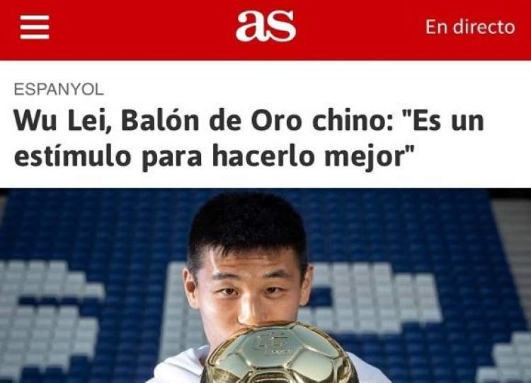 ■马德里《阿斯报》关注武磊获得中国金球奖