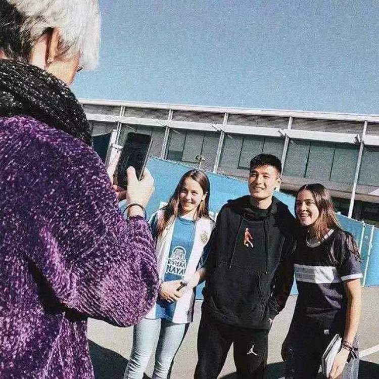 ■武磊和当地球迷在巴塞罗那大街上合影。图片:网络