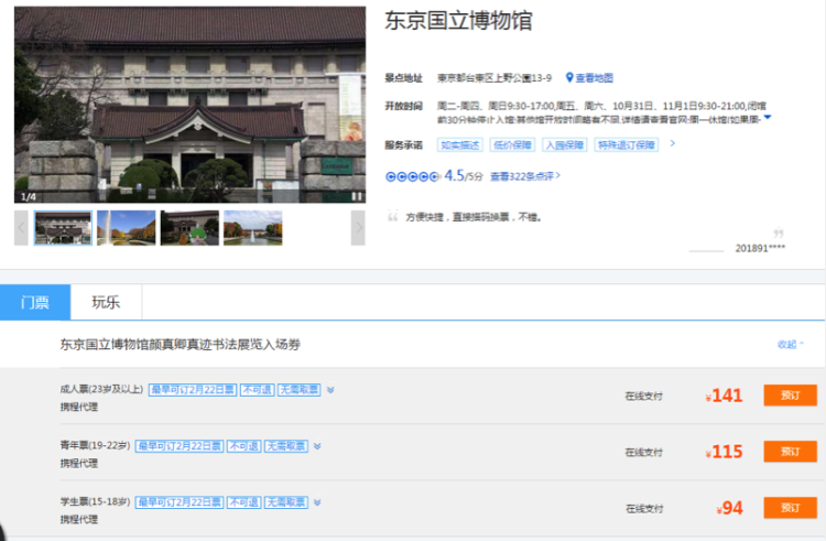 国人的热情还挤爆了中文订票网站。目前,国内预订展览门票的价格在94元起,分为学生、青年、成人三类票。记者从相关机构了解到,自1月份上线“颜真卿真迹书法展览”入场券后,去东京的自由行游客,相当大的比例在出行前和行程中,手机搜索下单买票,春节高峰日一度十分火爆一票难求。