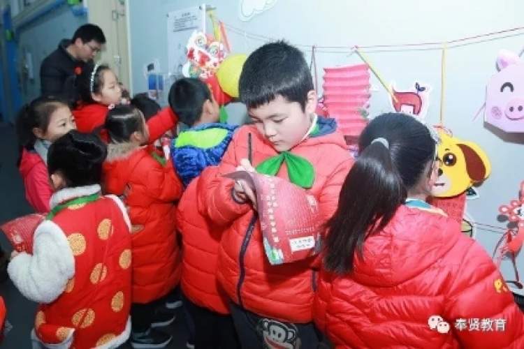 奉教院附小昨天一大早,校内张灯结彩,校门口热闹非凡,“宝贝沾福”、“红包纳福”、“灯谜集福”活动火热进行,附小娃娃们都被派发新年红包。红包里藏着什么?原来是一张张特别奖励券,“认养一棵百果园果树”、“承包一块开心菜园责任田”、“担当大队委员一周”……劳动最光荣,开启新里程。
