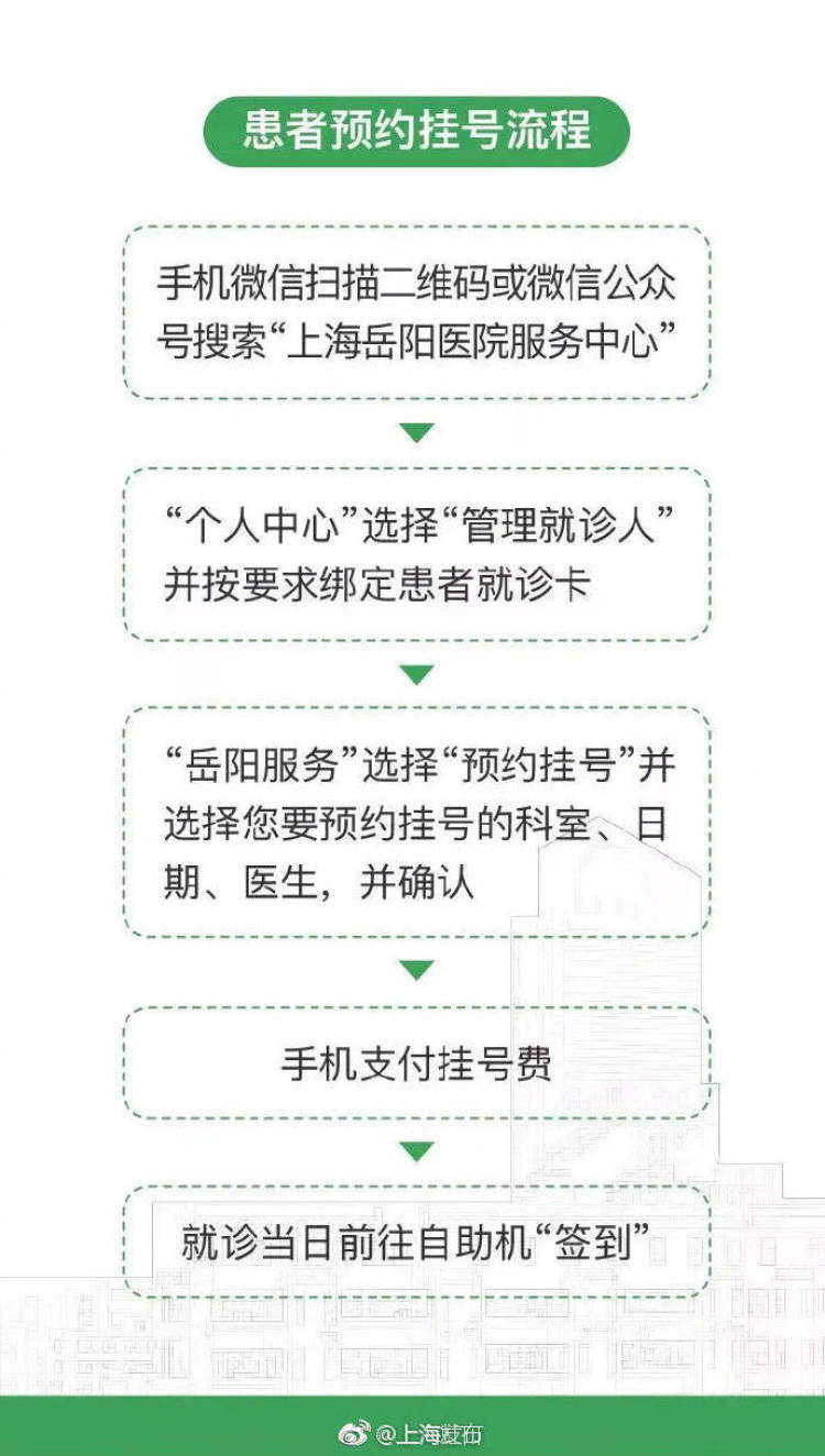 重要提醒!岳阳医院微信预约挂号将提前一天开放号源! 周到君 2019-2-24 来源:周到上海 有岳阳医院就医需要的朋友们注意了! 周到君从“上海虹口”得知,2月19日起,岳阳中西医结合医院线上预约挂号提前一天开放号源了! 原本提前14日预约,现可提前15日预约,也就是说,今天(2月24日)早上6点就可以预约3月10日及3月11日的号源了~ 预约的操作也方便,直接在手机上就能完成。 操作方法奉上↓ 预约完成之后,到了预约时间当日,去医院的自助签到机即可签到就医。 来源:周到上海 作者:周到君 赞一个 (0)