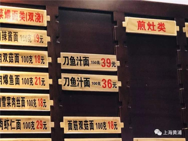 “刀鱼汁面”的价格为2两36元、3两39元,与去年持平。