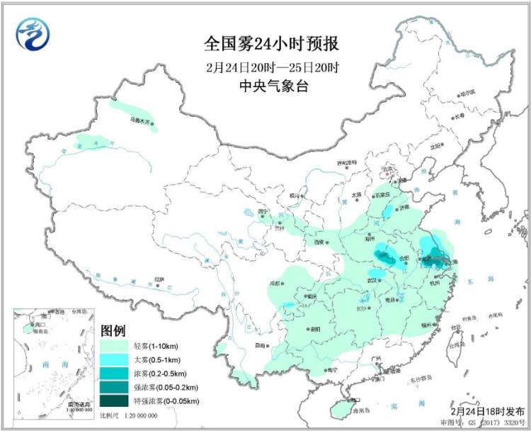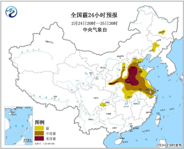 从全国雾24小时预报来看,近期全国雾最浓的区域就在上海附近。