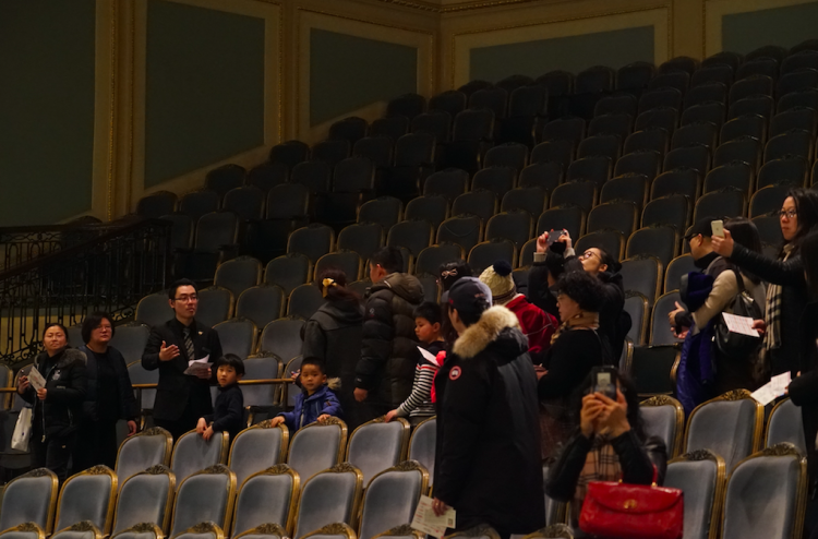 “现在,大家参观的是我们的大厅,共有751个座位,最后一排是立位。整个舞台是经典镜框式结构……”下午一点,在礼宾人的带领下,第一批观众开启了他们的音乐厅“探秘”之旅。