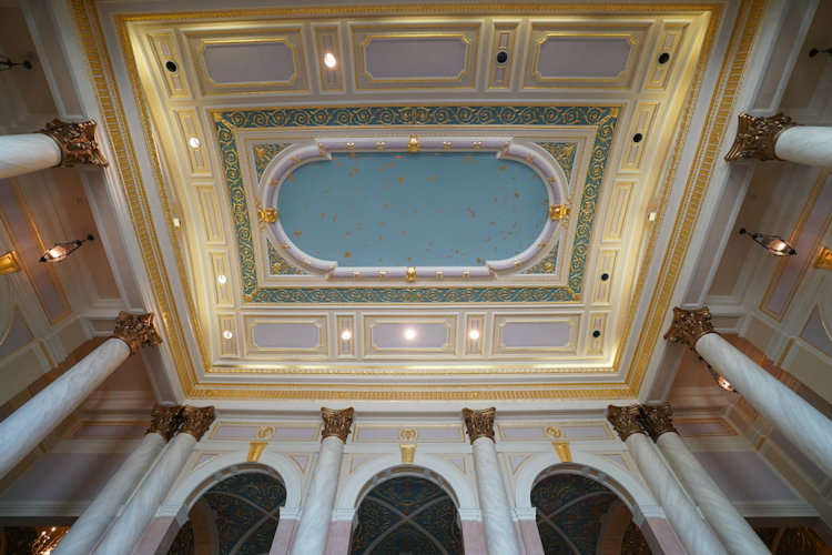 你知道,“海上蓝”大厅上漂亮的雕花穹顶,叫什么?声效最好的位置是哪个?