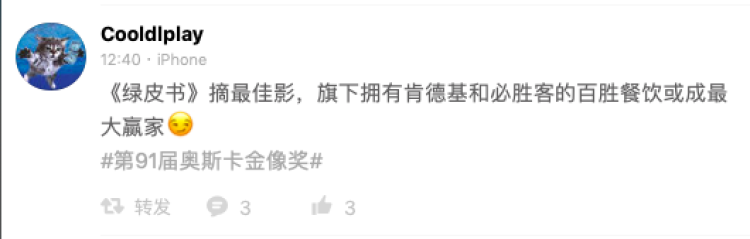这部电影得奖后,很多网友认为KFC才是奥斯卡的最大赢家!